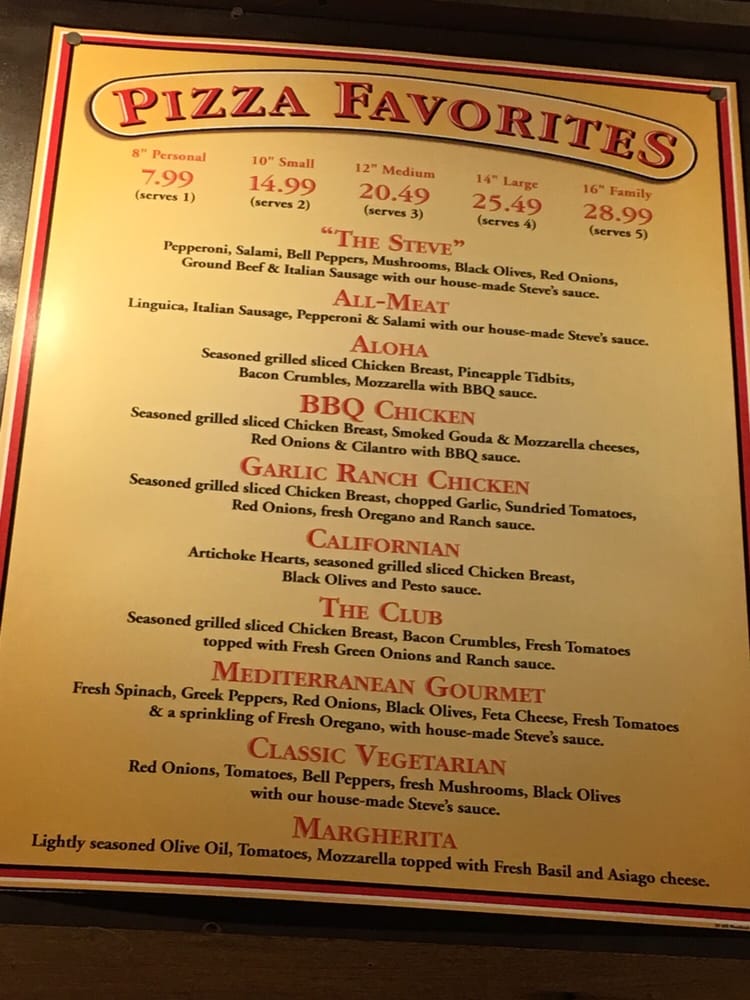 The menu boasts an array of mouthwatering options, featuring favorites like the Vegetarian pizza and the signature THE STEVE combo pizza, which are both highly praised by patrons. Don’t forget to dip your slices in their exceptional ranch, a local favorite!